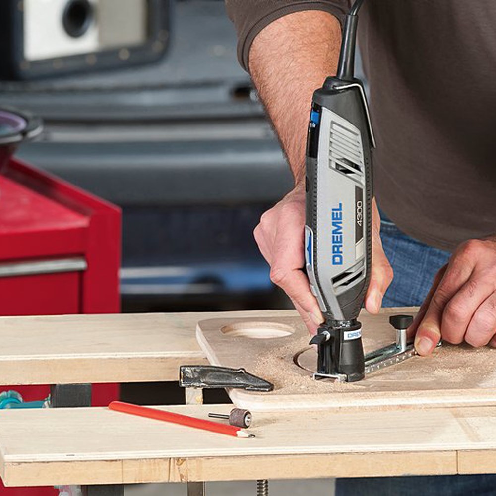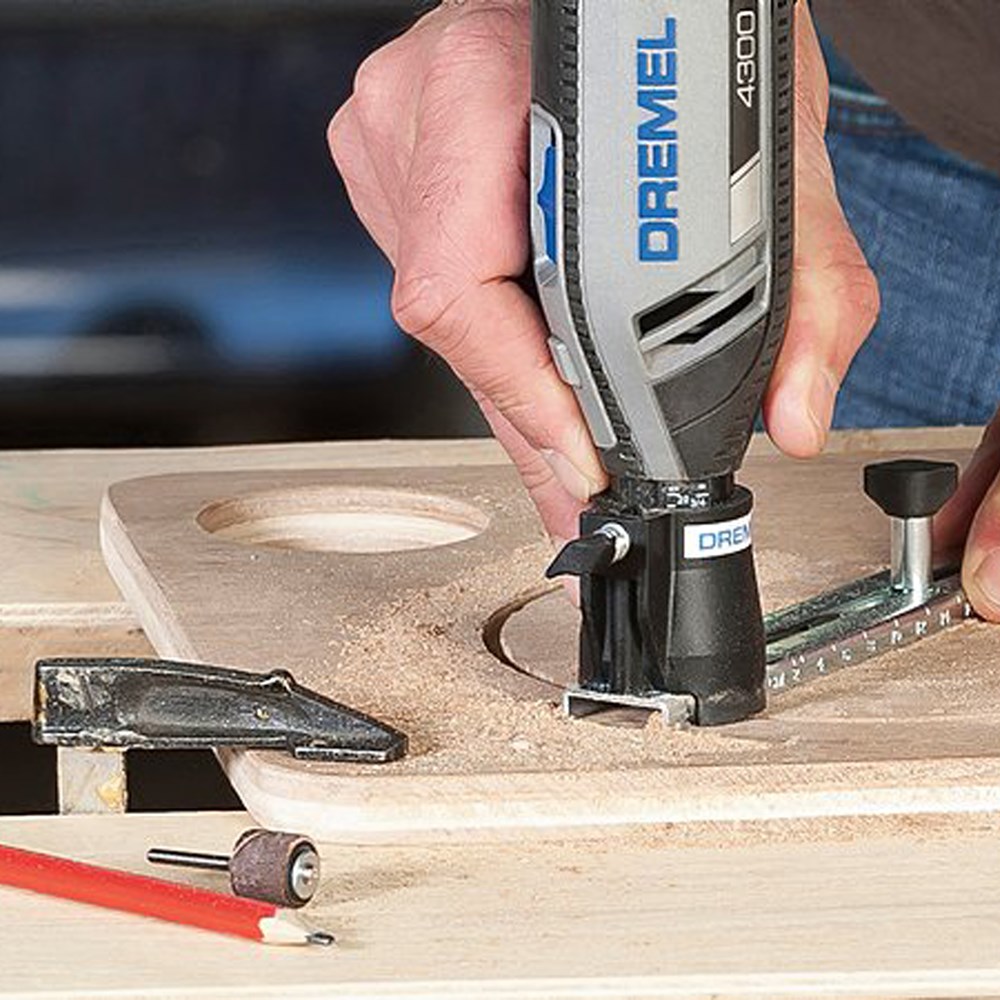 Snij perfecte cirkels met een diameter van 2 cm - 30 cm en scherpe rechte lijnen met een breedte van 1 cm - 11 cm. Bevestig het eenvoudig op je Dremel multigereedschap en je kunt beginnen. Met het meegeleverde multifunctionele freesmes (561) kun je dit hulpstuk gebruiken op materialen zoals hout, gipskarton en laminaat. De diepte-instelling en stalen constructie zorgen voor nauwkeurigheid en duurzaamheid.