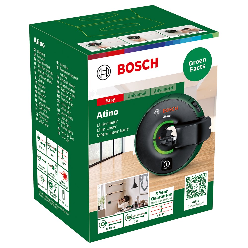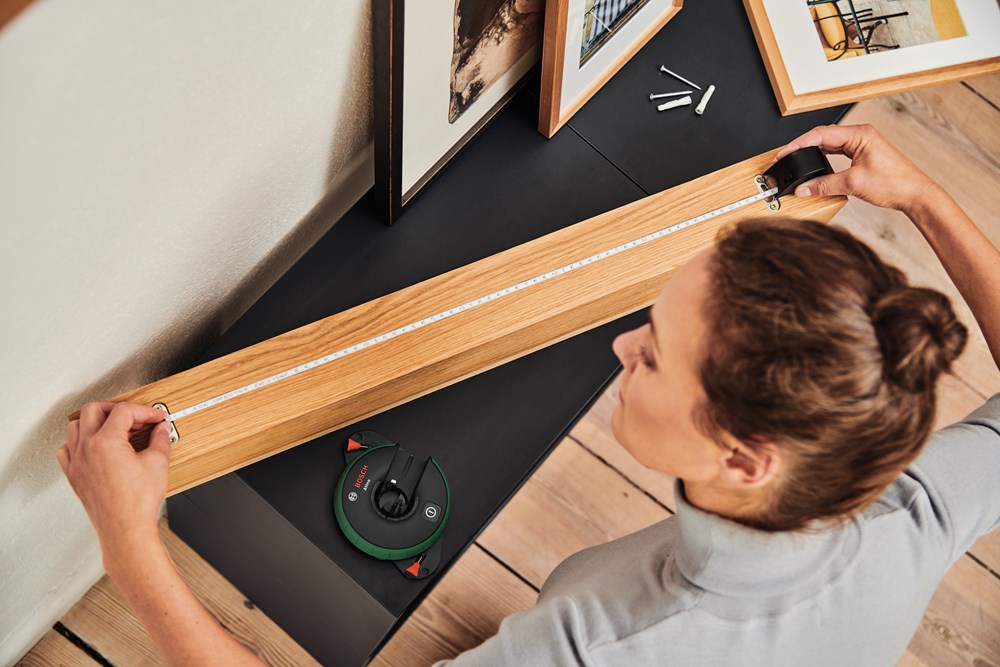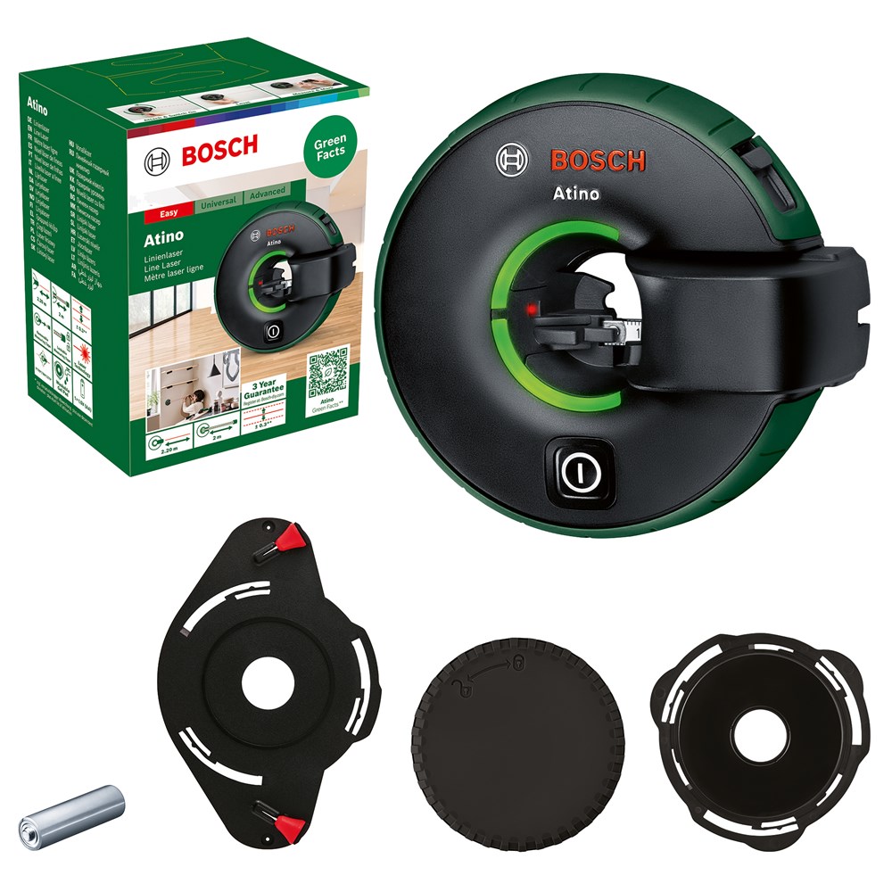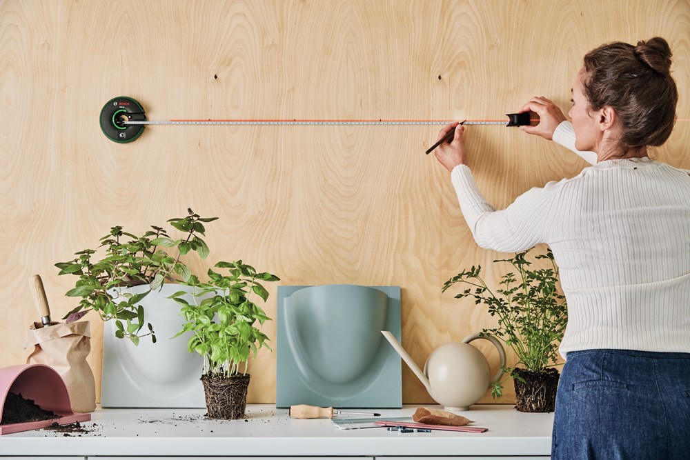 Met de Bosch Atino kunnen meerdere items gemakkelijk door één persoon in een rechte lijn worden opgehangen. Deze complete lijnlaser kan aan een muur of ander oppervlak worden bevestigd en projecteert horizontale of verticale lijnen, waardoor doe-het-zelfprojecten heel simpel worden. Met de verwijderbare rolmaat kan gemakkelijk worden gemeten tot een afstand van 2 m.