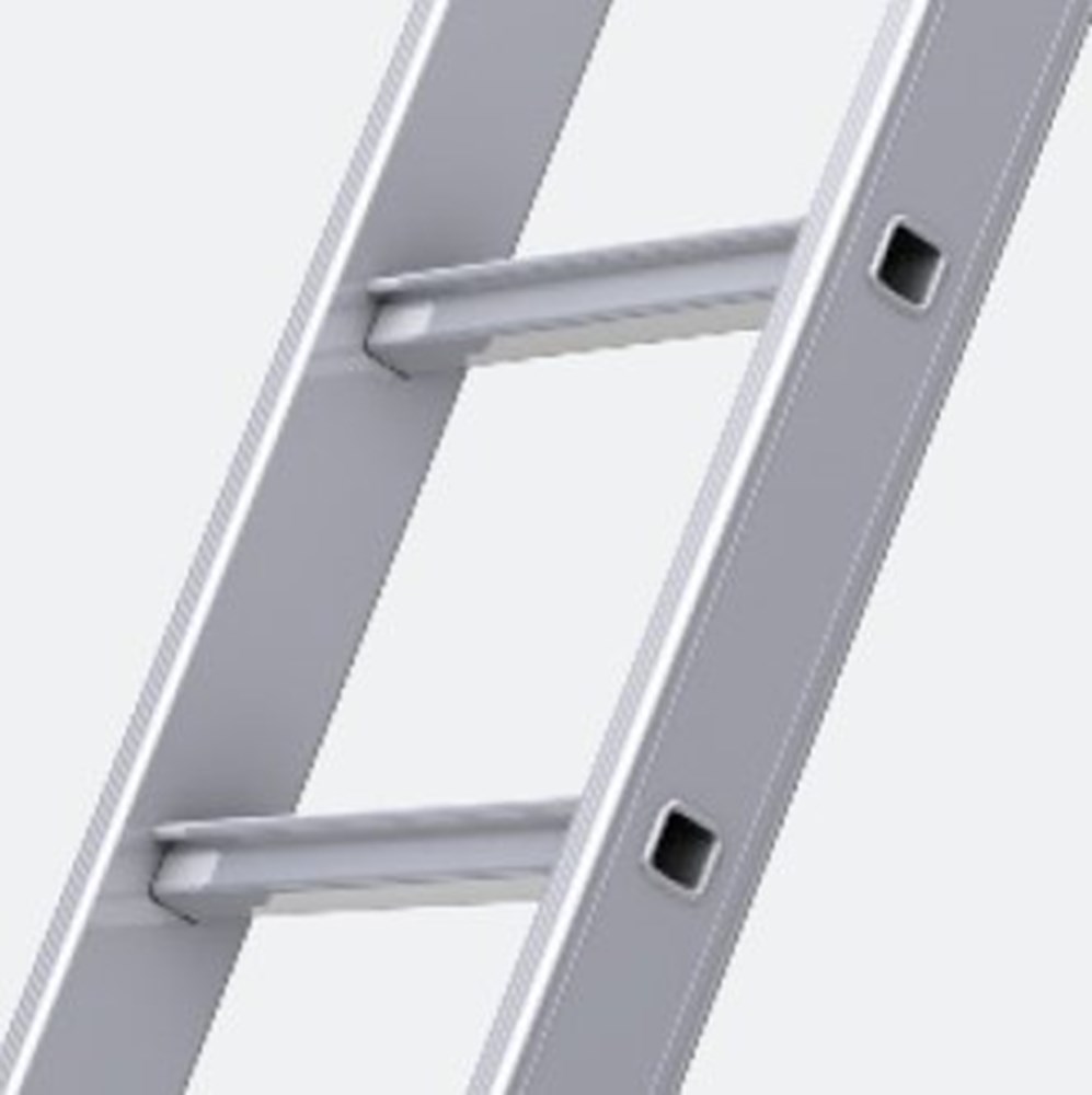 Contacteer onsRobuuste kokerboomprofiel ladder met horizontale anti-slip treden van 8 cm diep, stabiel loop- en stavlak. Voorzien van grote anti-slip voeten (79 mm).