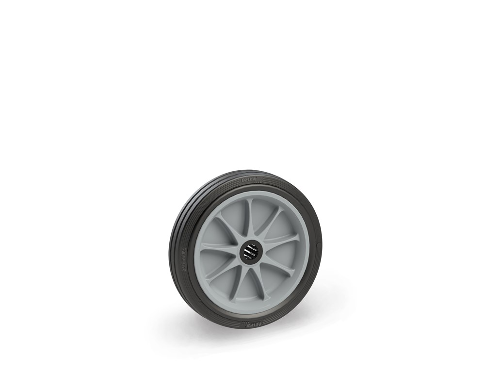 Contacteer onsZwarte massief rubber banden op glasvezel-versterkte kunststof velgen, naaf met rollager.
