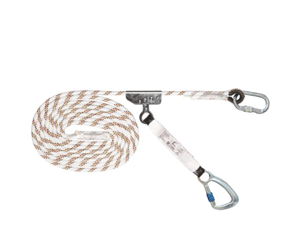 Contacteer onsAutomatische lijnklem op kernmanteltouw, niet demonteerbaar • Touw in polyester • Energie-absorbeerder in polyamide • CE Certificatie • EN 353-2 Inclusief: 1 x SH10 1 x AH40