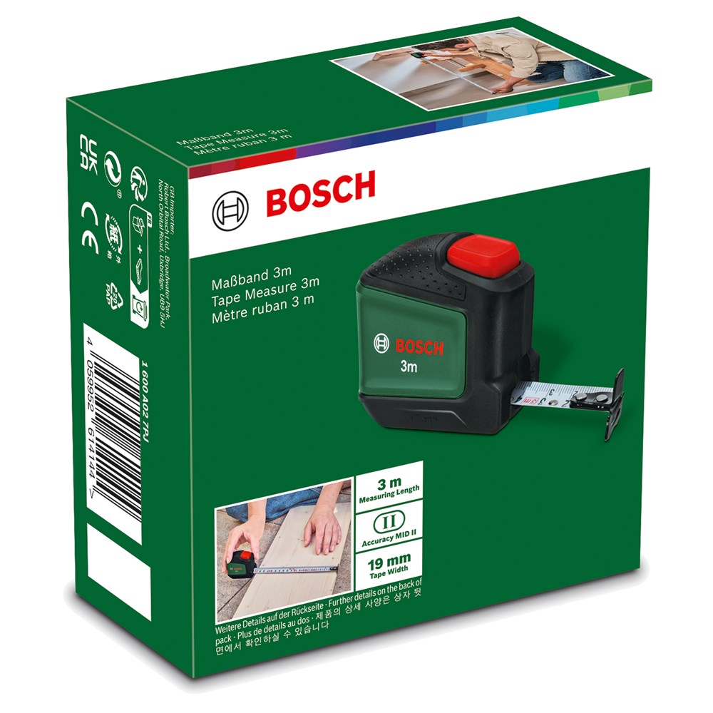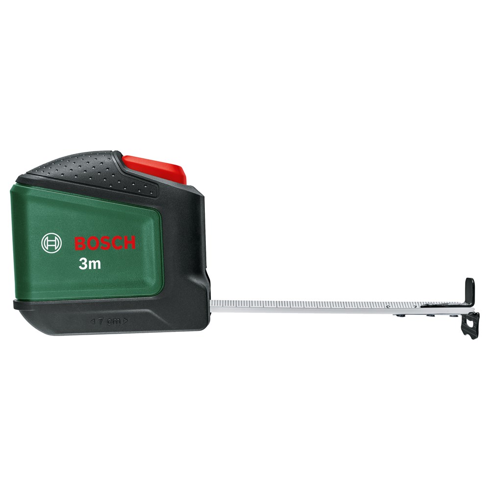 Meten gemakkelijk gemaakt: nauwkeurige rolmaat met praktisch intuïtief automatisch vergrendelmechanisme Voor behangen, repareren en een groot aantal meetklussen in en om huis is de slijtvaste Bosch rolmaat van 3 meter met een Mid II-nauwkeurigheidsniveau het enige gereedschap dat nodig is. Ergonomisch ontworpen voor optimaal comfort en duurzaamheid heeft dit robuuste gereedschap grote softgripvlakken en een robuust, 19 mm breed lint met nylon coating. De automatische vergrendelingsfunctie zorgt voor een hoge mate van comfort met een stabiele houvast zonder te knikken tot een indrukwekkende 1,8 meter voor snel meten van korte en lange afstanden. Deze rolmaat met automatische vergrendeling heeft een riemclip voor gemakkelijk dragen van huis naar tuin en wordt snel vastgemaakt aan oppervlakken met de bidirectionele haak. Voor meer flexibiliteit, zelfs bij het meten vanaf de achterkant van het gereedschap, is deze allrounder ontworpen met een platte eindstop.