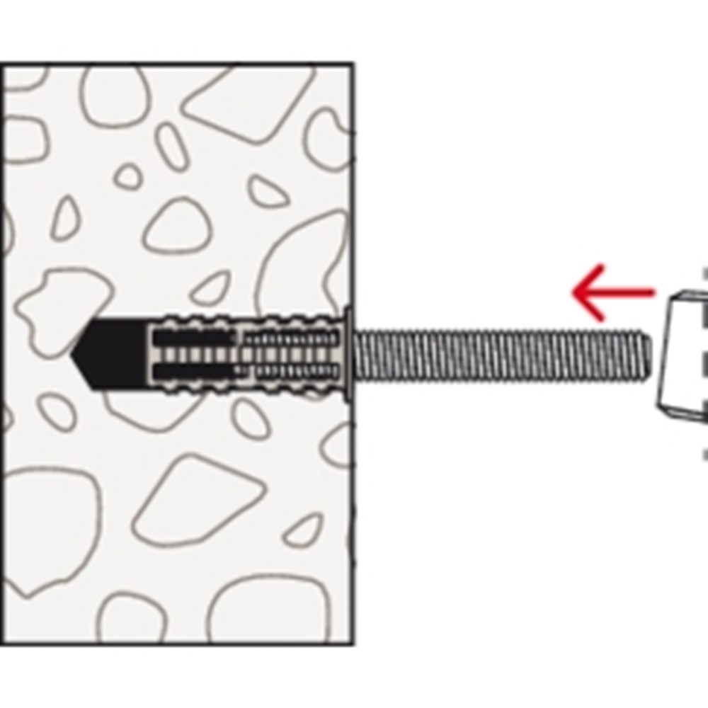 Contacteer onsDe fischer RodForce FGD M6x35 is een economische keuze voor het bevestigen van metrische draadeinden in volle ondergronden. Het draadeinde en nylon plug laten zich gemakkelijk en snel plaatsen middels enkele hamerslagen. De korte pluglengte voorkomt dat wapening geraakt wordt en reduceert de boortijd. De gesloten punt geeft de verankeringsdiepte weer, maar het draadeind kan ook door de punt heengeslagen worden waarmee het uitstekende draad kan worden gesteld.