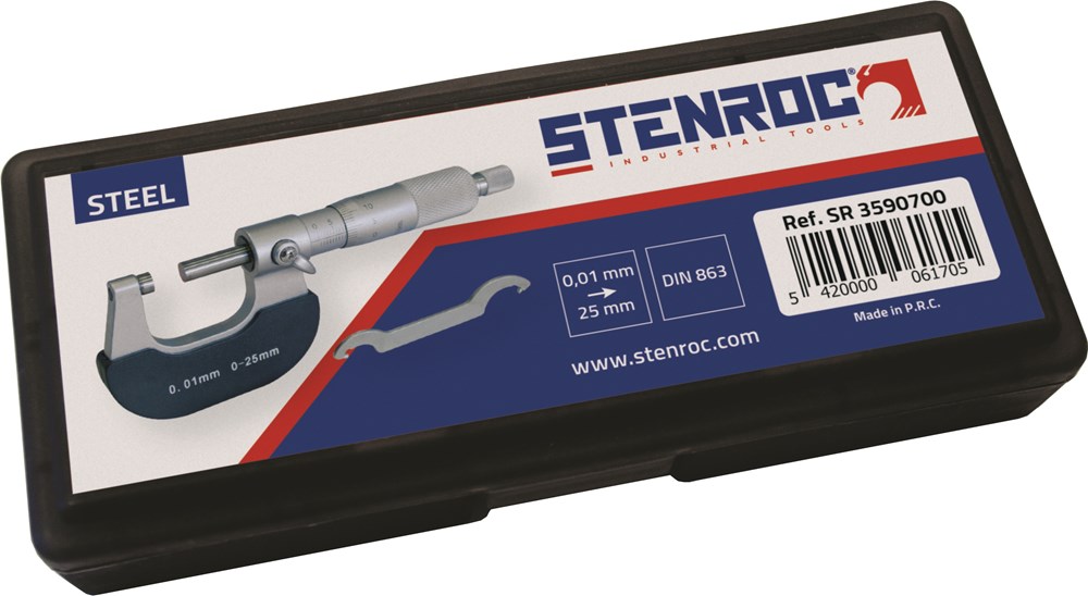 Contacteer onsSTENROC Artikelnummer: PPSR 3590700 MICROMETER IN STAAL 0-25MM DIN 863 . 0.01 MM