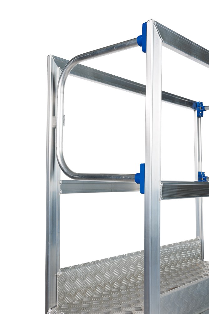 De zelfsluitende toegangsdeuren, die alleen in opwaartse richting openen, maken het mogelijk om het platform veilig te betreden, zelfs met gereedschap in de handen. Hierdoor kun je snel en efficiënt aan de slag.