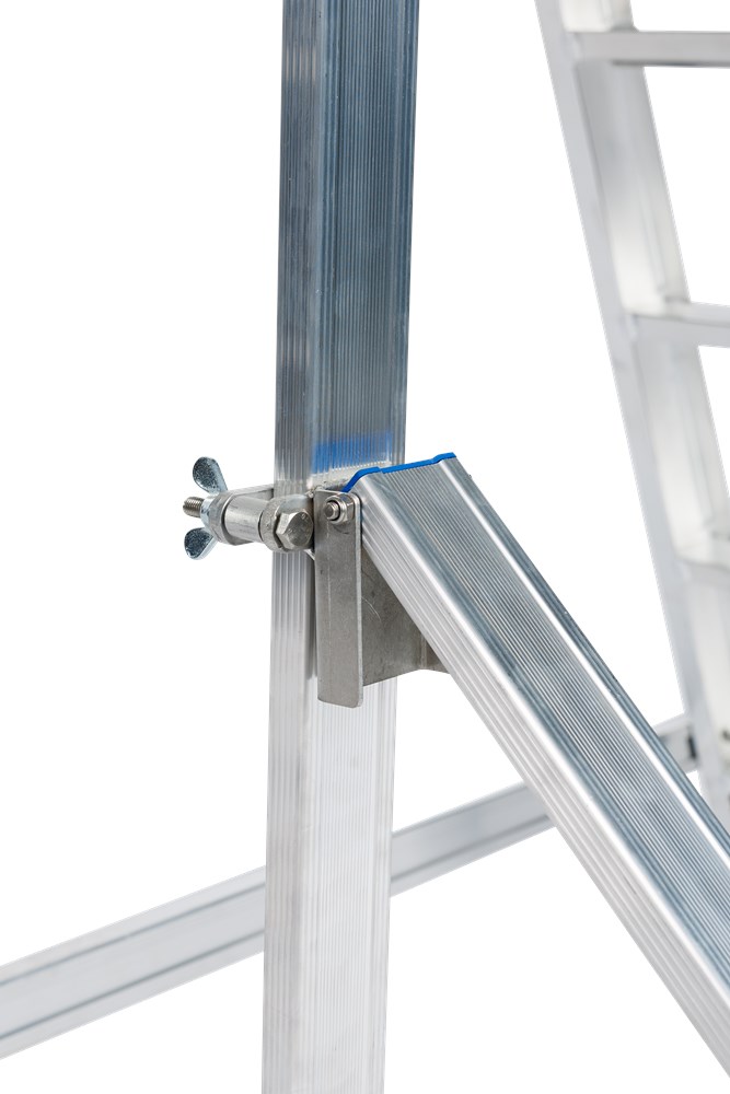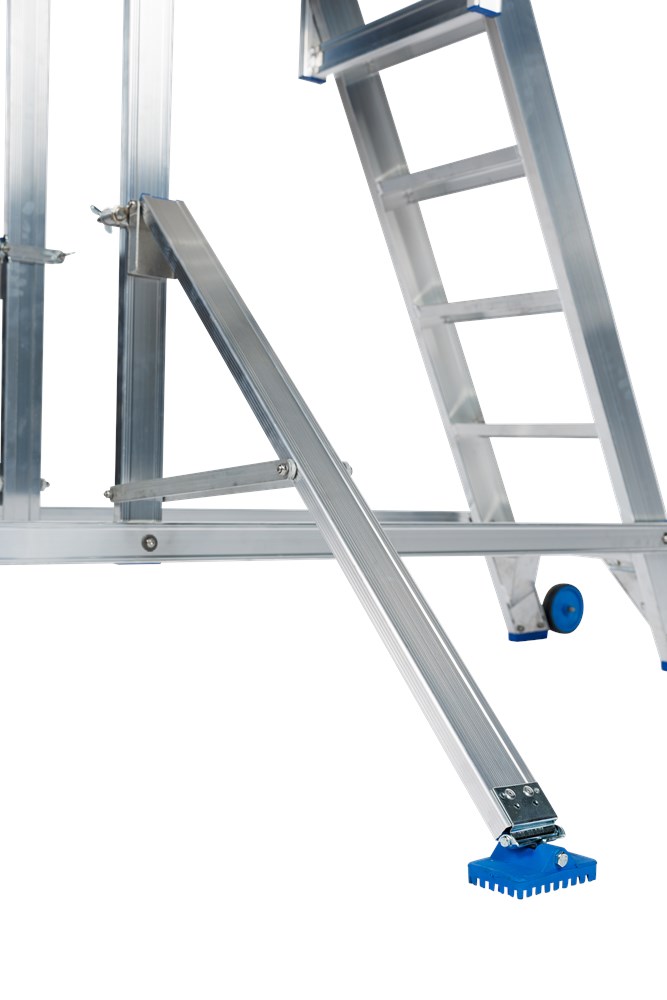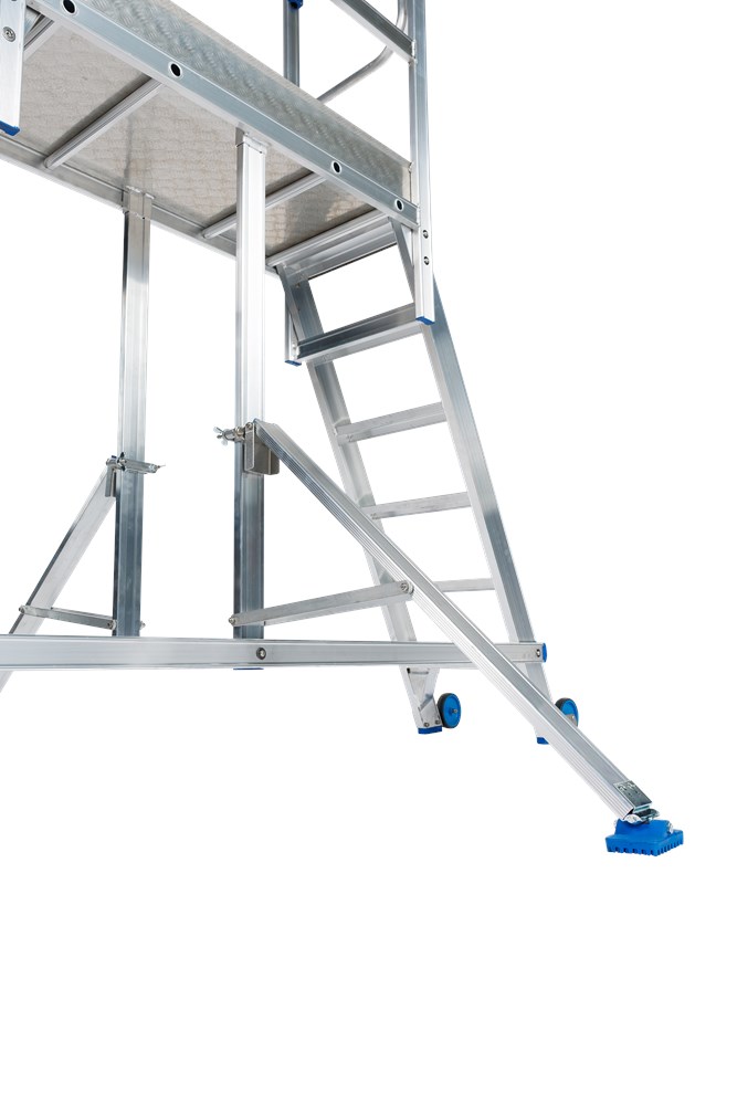 Contacteer onsErvaar het gemak en de veiligheid van ons mobiele werkplatform met dubbele toegang. Dankzij de twee regelbare stabilisatoren met pivoterende voeten is dit platform super stabiel, zelfs op ongelijke ondergronden.