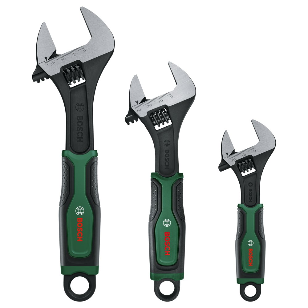 Voor een breed scala aan DIY-bevestigingsklussen biedt de hoogwaardige 3-delige verstelbare-moersleutelset van Bosch flexibiliteit, robuuste prestaties en comfort. De sleutels zijn ergonomisch ontworpen en kunnen eenvoudig worden aangepast aan verschillende maten bevestigingsmiddelen.