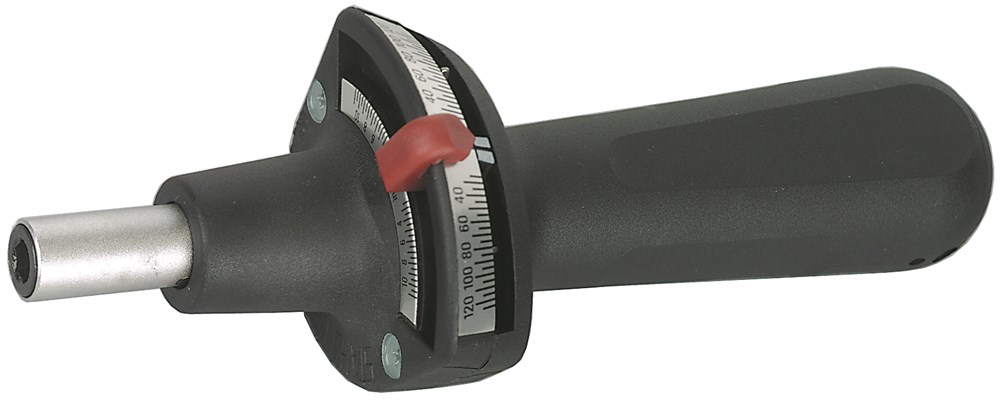 Contacteer onsAanwijzend, platte torsieveer als meetelement, voor rechtsom- (met sleepwijzer) en linksomgebruik, met 1/4" binnenzeskant (F 6.3 DIN 3126), vergelijkingsschaal in.lb en schuifwijzer, doppen en verbindingshulpstukken met buitenzeskant E 6.3 (1/4") DIN 3126/ISO 1173 zitten stevig vast in de zeskante schacht, voor gebruik van 1/4"-doppen verbindingshulpstuk nr. 3115 bestellen, met certificaat, weergave-afwijking ± 6 %.