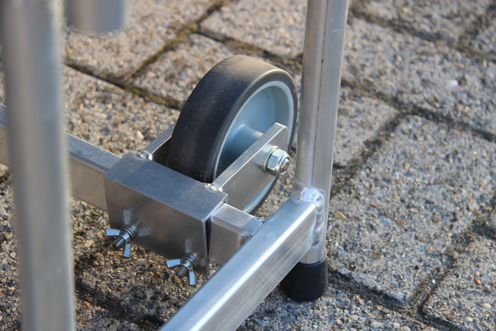 U kunt kiezen voor extra leuningen en wielen om de trap gemakkelijk te verrijden.