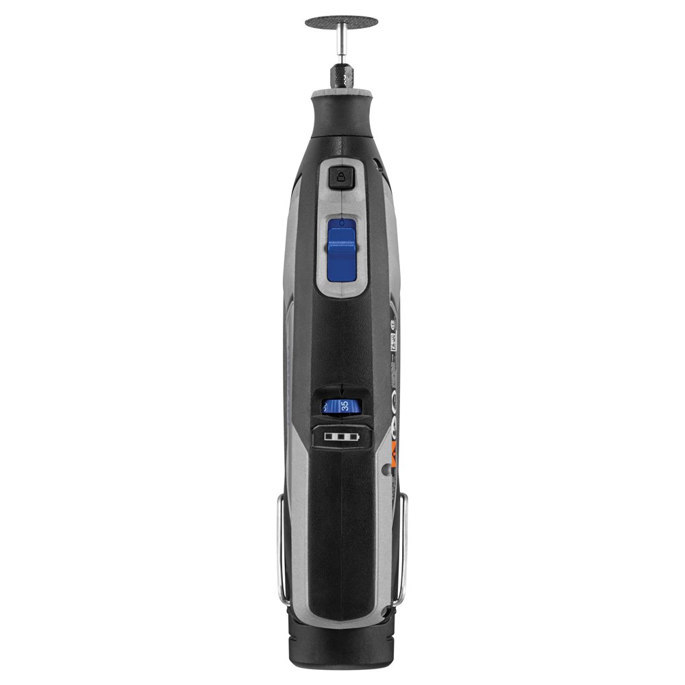 Dremel 8240 is ontworpen met jou in gedachten. Van het ergonomische ontwerp van het gereedschap tot de plaatsing van de knoppen, dit draagbare multigereedschap heeft het allemaal. Je zult onze kenmerkende Dremel look en feel herkennen en je zult fan zijn van zijn gebruiksgemak en logische lay-out. We hebben ervoor gezorgd dat hij koeler en met minder geluid werkt (in vergelijking met de Dremel 8220), zodat je al je aandacht op je klus kunt richten. En de softgrip past net als een handschoen. De toerentalinstelling van de Dremel 8240 zit in het midden, precies waar je je duim plaatst om het gereedschap vast te houden. Dat is nu echt ergonomisch ontwerp binnen handbereik.Dremel 8240 heeft ook een motorrem waardoor je meer controle hebt en veiliger kunt werken. In plaats van een vertragende kracht uit te oefenen, stopt de motorrem de rotatie onmiddellijk wanneer het gereedschap wordt uitgeschakeld. De LED-indicatoren voor de levensduur van de accu tonen je in één oogopslag het resterende acculaadniveau. Jouw Dremel 8240 wordt geleverd met een ophangbeugel, dus je kunt hem gemakkelijk aan je Dremel-gereedschapshouder hangen met je Dremel flexibele as.