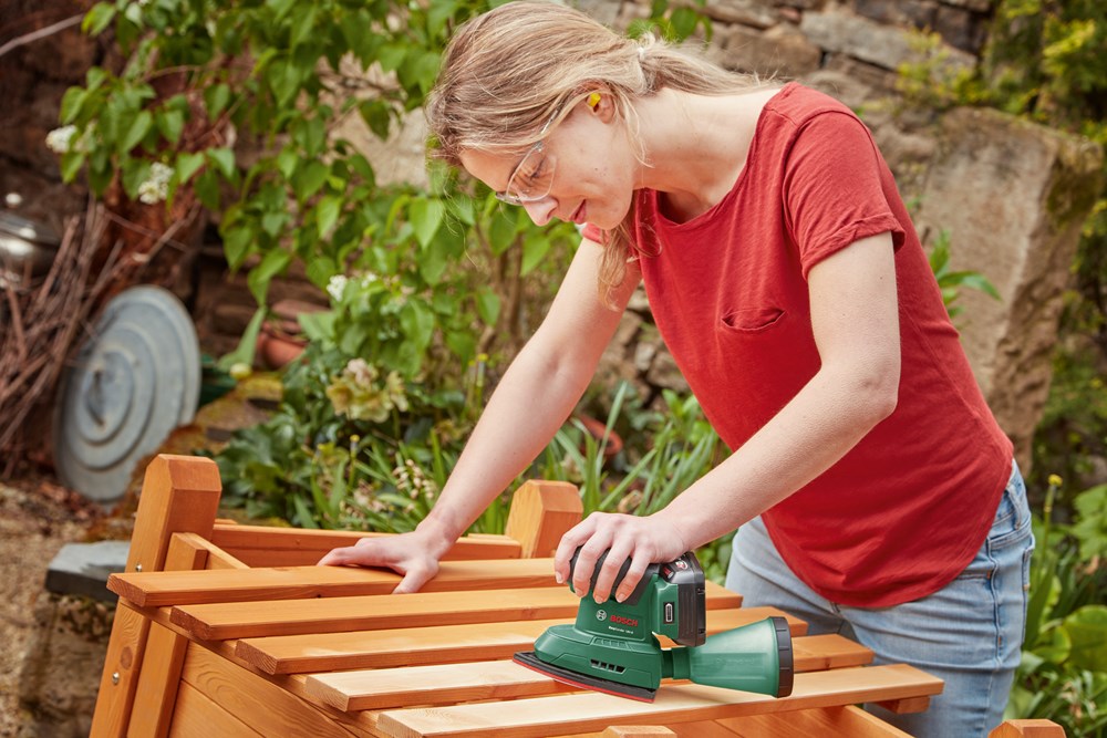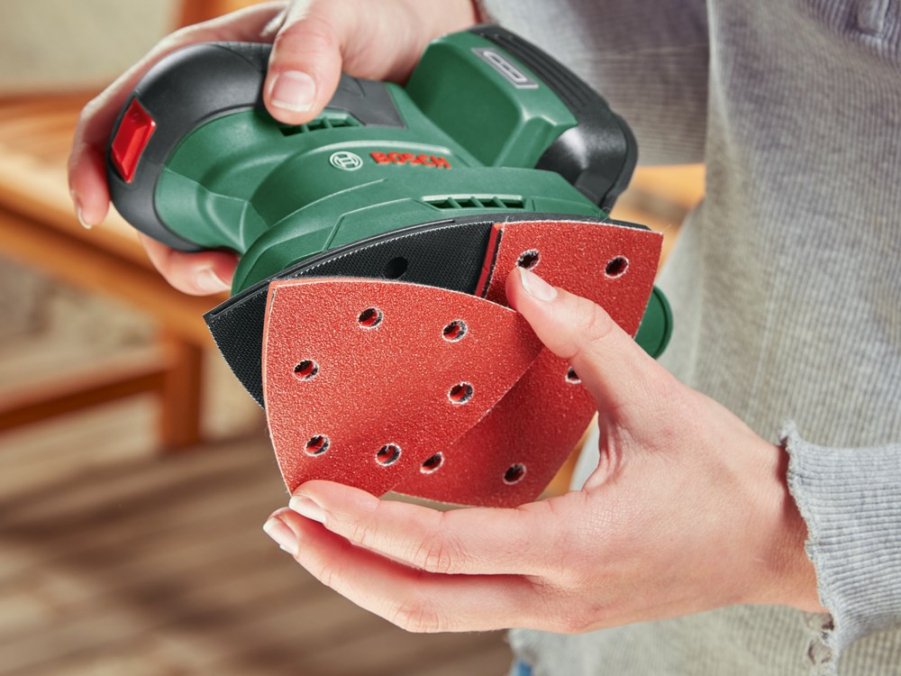 Ideaal voor het snoerloos schuren van middelgrote platte oppervlakken evenals hoeken en randen De krachtige, snoerloze EasySander 18V-8 is perfect voor allerlei klussen. Deze is multifunctioneel ontworpen voor het werken in hoeken, langs randen en op middelgrote platte oppervlakken. Schuurpapier wordt snel en gemakkelijk gewisseld door het klithechtsysteem. Deze machine is perfect voor hardhout, zacht hout en geverniste en geverfde oppervlakken evenals voor het afwerken van meubels, deuren, kozijnen enz. De gemakkelijk afneembare Microfilter-stofbox vermindert stof om de werkomgeving schoner te houden. De geïntegreerde Bosch Syneon Technology zorgt voor optimaal vermogen en maximale looptijd. Het gereedschap maakt deel uit van het 18V POWER FOR ALL-systeem. Eén accu kan worden gebruikt voor alle 18V POWER FOR ALL-gereedschappen.