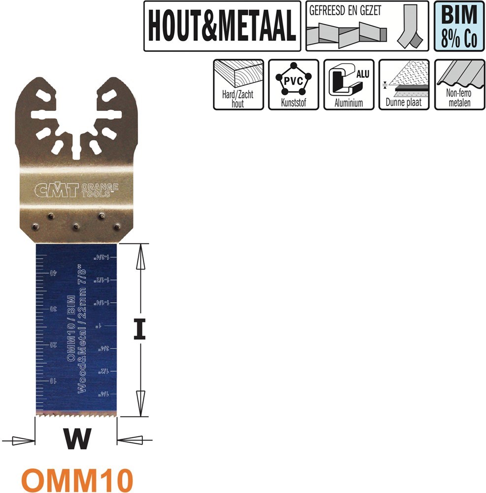 Contacteer onsCMT Artikelnummer: CTOMM10-X1 MULTITOOLZAAGBLAD VOOR HOUT EN METAAL. 22MM