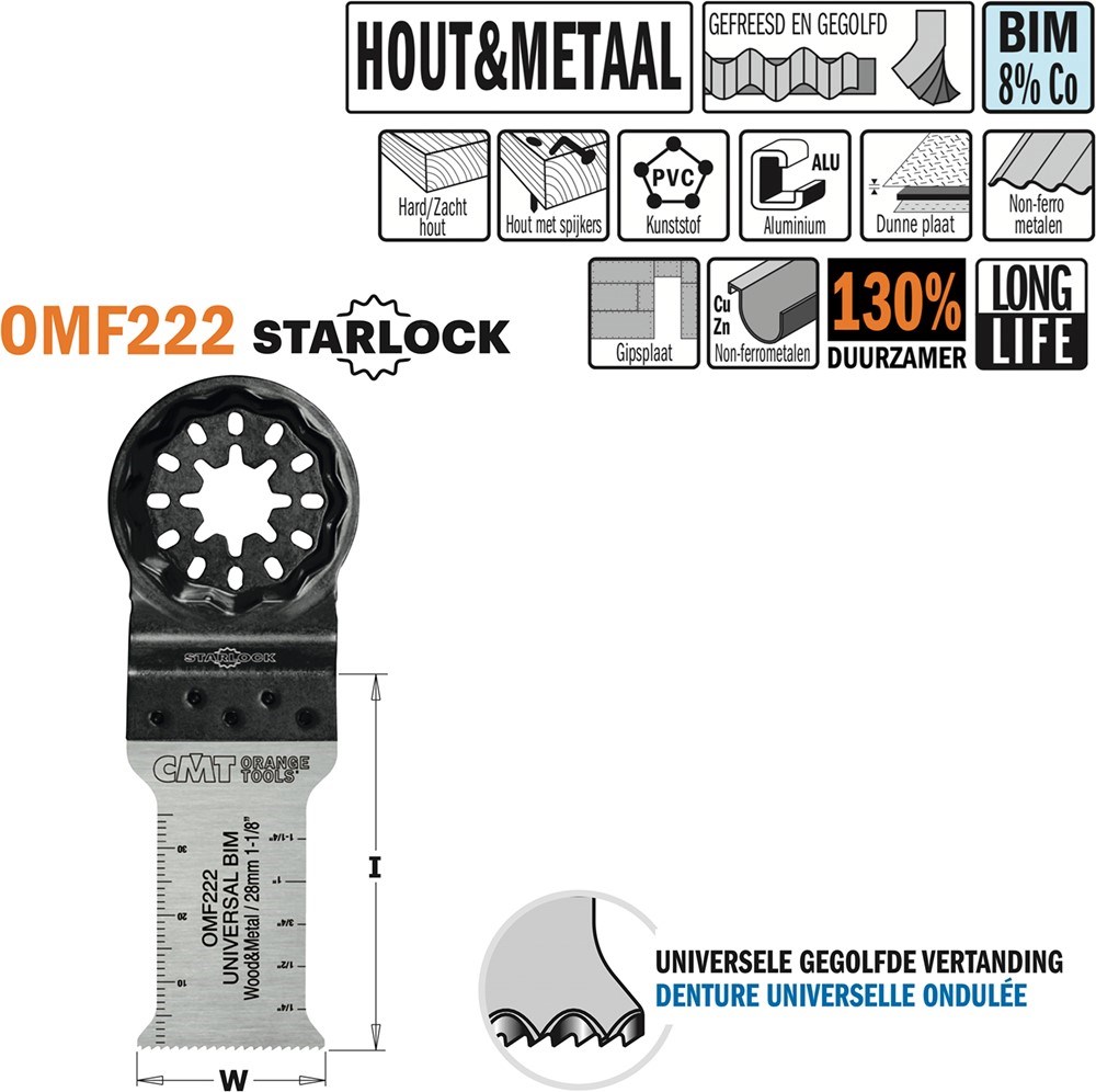 Contacteer onsCMT Artikelnummer: CTOMF222-X5 MULTITOOLZAAGBLAD VOOR HOUT EN METAAL. 28MM