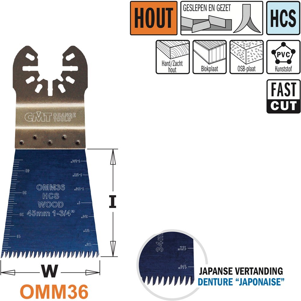 Contacteer onsCMT Artikelnummer: CTOMM36-X5 MULTITOOLZAAGBLAD (JAPANSE VERTANDING) VOOR HOUT. 45MM