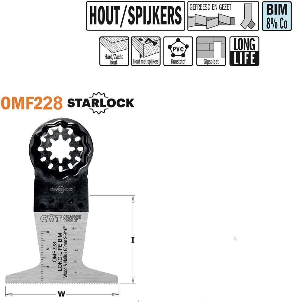 Contacteer onsCMT Artikelnummer: CTOMF228-X5 MULTITOOLZAAGBLAD VOOR HOUT MET SPIJKERS. 65MM