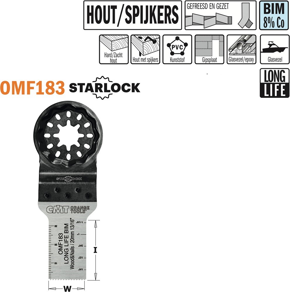 Contacteer onsCMT Artikelnummer: CTOMF183-X5 MULTITOOLZAAGBLAD VOOR HOUT MET SPIJKERS. 20MM