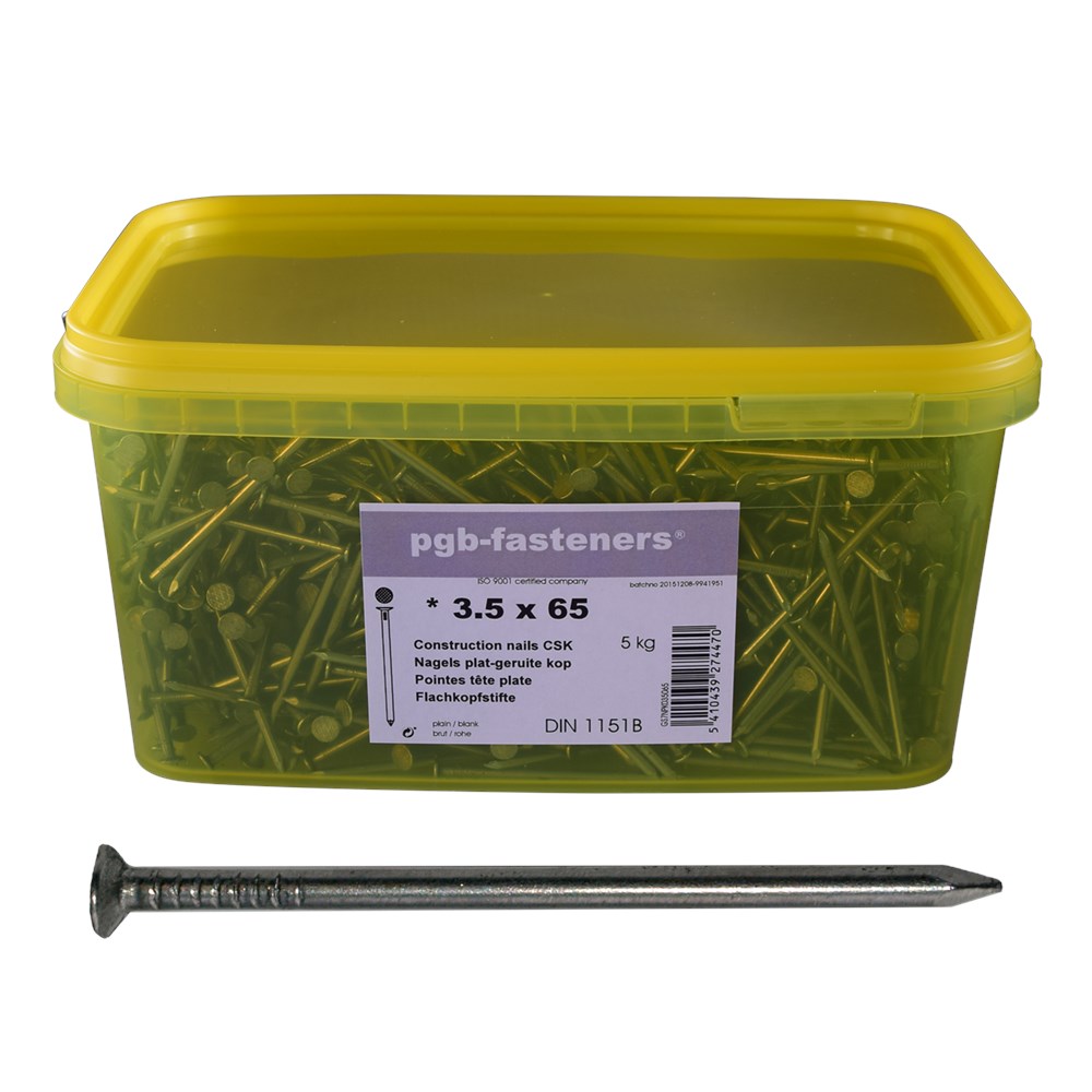 Contacteer onsPGB-FASTENERS Artikelnummer: 000NPK00000270050M NAGEL PLAT KOP D.1151B 2.7X50/EMMER 5KG