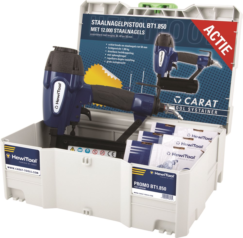 Contacteer onsCarat Artikelnummer: SUFDBT1.850PROM Staalnagelpistool BT1.850 SET