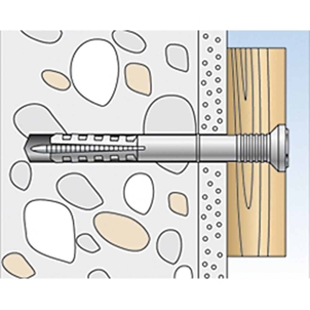 Contacteer onsDe fischer Nagelplug N-F met platte kop bestaat uit een plug van kwalitatief hoogwaardig nylon en een gegalvaniseerde nagelschroef. Deze zijn voor een snelle montage reeds vooraf gemonteerd. De nagelplug wordt in de tijdbesparende doorsteekmontage door het montagestuk gevoerd. Bij het intikken van de nagelschroef spreidt de huls open en verankert in het materiaal. De fischer Nagelplug N-F met platte kop is ideaal voor de bevestiging van metaalconstructies in allerlei bouwmaterialen in de interieurbouw.
