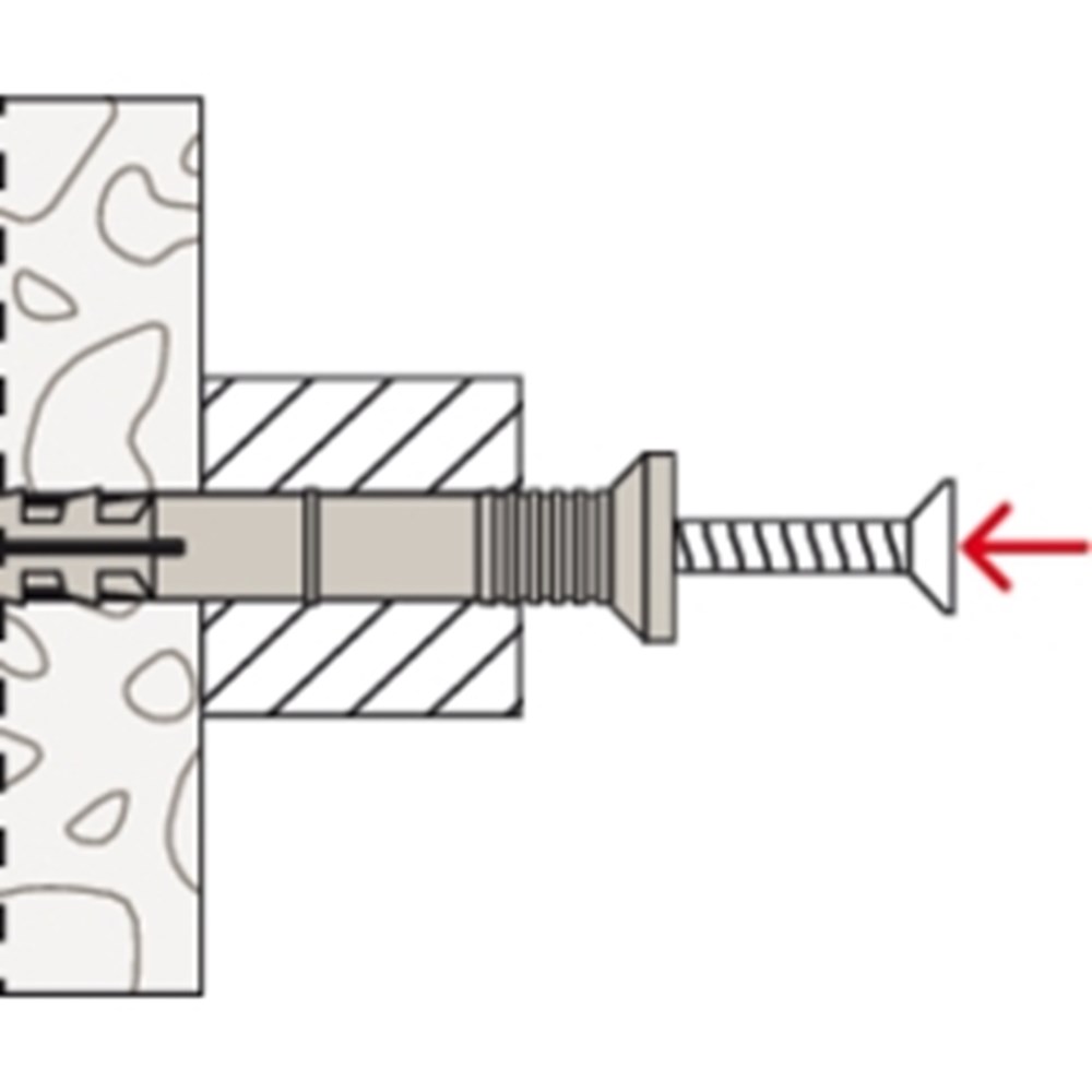 Contacteer onsDe fischer Nagelplug N-S met verzonken kop bestaat uit een plug van kwalitatief hoogwaardig nylon en een gegalvaniseerde nagelschroef. Deze zijn voor een snelle montage reeds vooraf gemonteerd. De nagelplug wordt in de tijdbesparende doorsteekmontage door het montagestuk gevoerd. Bij het intikken van de nagelschroef spreidt de huls open en verankert in het materiaal. De fischer Nagelplug N-S met verzonken kop is ideaal voor de bevestiging van houtconstructies in allerlei bouwmaterialen in de interieurbouw.