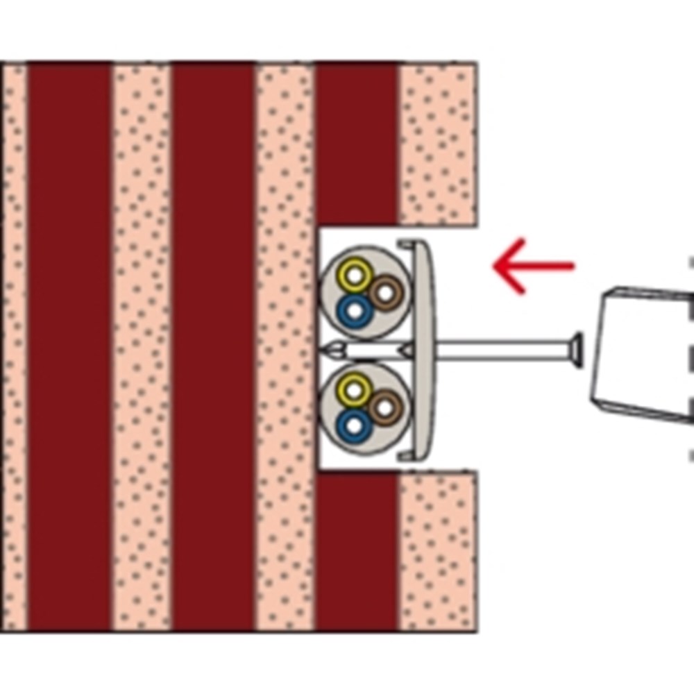 Contacteer onsDe fischer Nagelschijf NSB is een oplossing voor het bevestigen van kabels in openingen in muren en op houtconstructies. De nagelschijf van kwalitatief hoogwaardig polypropyleen en een geharde, gegalvaniseerde staalnagel zijn reeds voorgemonteerd. De nagelschijf wordt gepositioneerd en de nagel met behulp van een hamer ingeslagen – klaar. De fischer Nagelschijf NSB is geschikt om kabels met verschillende diameters in openingen in muren en op hout te bevestigen. Gemakkelijk onder pleisterwerk weg te werken door de vlakke nagelschijf.