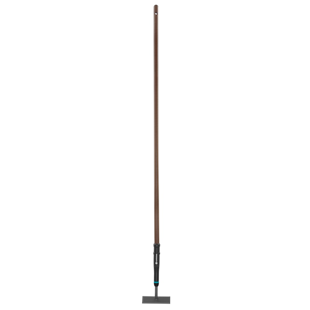 Contacteer onsMet de GARDENA NatureLine schoffel haal je storend onkruid eenvoudig en snel weg uit perken en van paden. Milieuvriendelijk tuingereedschap Tuinliefhebbers houden van de natuur en daarom is milieuvriendelijk tuingereedschap belangrijk. GARDENA hecht dan ook veel belang aan de materialen voor het gereedschap. De steel voor de gereedschappen wordt daarom uitsluitend gemaakt van hout uit milieuvriendelijke en voorbeeldige bosbouw. De steel is van 100% gelakt beukenhout met FSC®-certificaat. Onberispelijke resultaten Storend onkruid is helaas een neveneffect dat in elke tuin voorkomt, hoe goed deze ook wordt onderhouden. Wilde planten zijn ongenode gasten die ook nog vrienden meebrengen als je er niet op tijd bij bent om ze weg te halen. Met de GARDENA NatureLine schoffel verwijder je deze ongenode gasten snel en probleemloos. Dit betekent dat je weer geniet van een gezellige tuin zonder lastpakken. Grondig en comfortabel wieden Met een werkbreedte van 14 cm kun je probleemloos onkruid wieden. De onderkant van het blad is rondom scherp, waardoor het bijzonder betrouwbaar en goed werkt. Met de lange steel van de schoffel doe je dit werkje zonder bukken en zonder pijnlijke rug. Zo garandeert de hak een maximaal comfort. Stevig en duurzaam Voor de houten steel en het stalen blad zijn hoogwaardige en zeer slijtvaste materialen gebruikt. Het blad van roestvrij staal is bovendien voorzien van een Duroplast-coating om de onkruidhak goed te beschermen tegen corrosie. Dit voorkomt vervorming en garandeert jarenlang gebruik in de tuin. Geen wiebelen, geen kromtrekken De onkruidhak zit stevig vast aan de steel. Dit betekent dat je onkruid probleemloos kunt wieden.