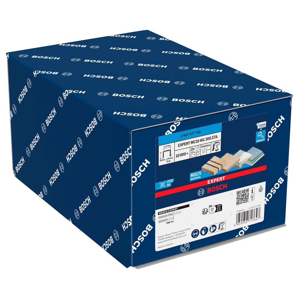 De EXPERT MC16-KG G ETA zijn constructienieten met een zware draad voor binnen- en beschermde buitentoepassingen die een robuuste verbinding vereisen. Ze zijn voorzien van een diamantcoating gemaakt met behulp van Diamond Technology voor uitzonderlijke sterkte en houdkracht. De gegalvaniseerde laag van 12 μm maakt ze ideaal voor elke taak van serviceklasse 2. Nieten met een middelgrote rug zijn 11,3 mm breed en beslaan een groter gebied dan nieten met een smalle rug. De EXPERT-nieten zijn het meest geschikt voor bouwvakkers en timmerlieden die houten frames en houten constructies met elkaar verbinden of gipsplaat, multiplex en gevelbeplating installeren.