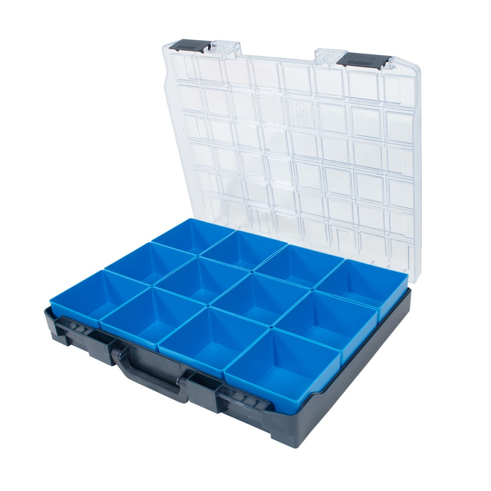 Contacteer onsZevim Artikelnummer: LJ2153306612 KUNSTSTOF ASSORTIMENTSKOFFER 12 INZETBAKJES BLAUW