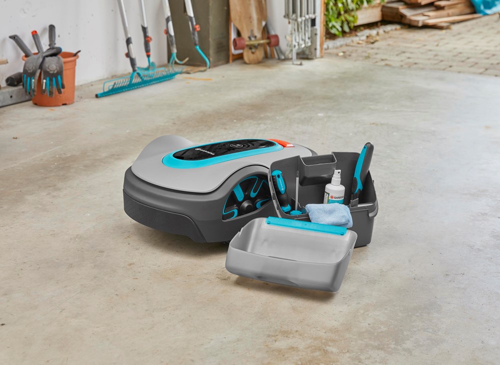 Contacteer onsDe GARDENA Onderhouds- en Reinigingsset is de perfecte oplossing voor het onderhoud van GARDENA robotmaaiers. De GARDENA Onderhouds- en Reinigingsset voor robotmaaiers bevat een reinigingspad tegen vuil, twee verschillende borstels, een reinigingsspray en een speciale schroevendraaier om bijvoorbeeld zelf de messen te vervangen. Alle onderdelen van de GARDENA Onderhouds- en Reinigingsset zitten beschermd tegen stof en vuil in een plastic doos met deksel.