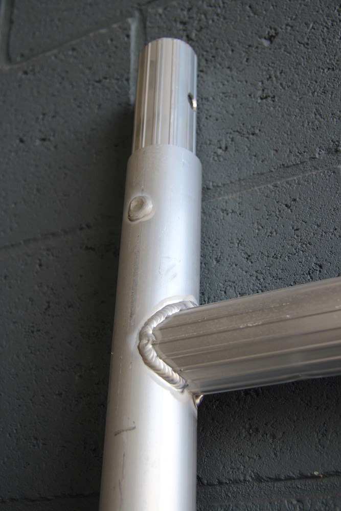 De wanddikte van de schoren en de buizen van het opbouwframe is 2,0 mm. Deze rolsteiger is uitstekend te combineren met andere systemen die dezelfde maat voeren.