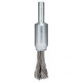 De eindborstel biedt een goede grove afwerking van het oppervlak. De borstel is voorzien van getordeerde draad voor zware reinigingswerkzaamheden op kleine oppervlakken. Vanwege de vorm is de eindborstel ideaal voor de reiniging van zeer moeilijk bereikbare plekken op zowel roestvrij staal, aluminium en non-ferrometalen als in hoeken en de binnenkant van buizen en profielen. De borstel is ook geschikt voor het verwijderen van zware roest, lak en vernis.
