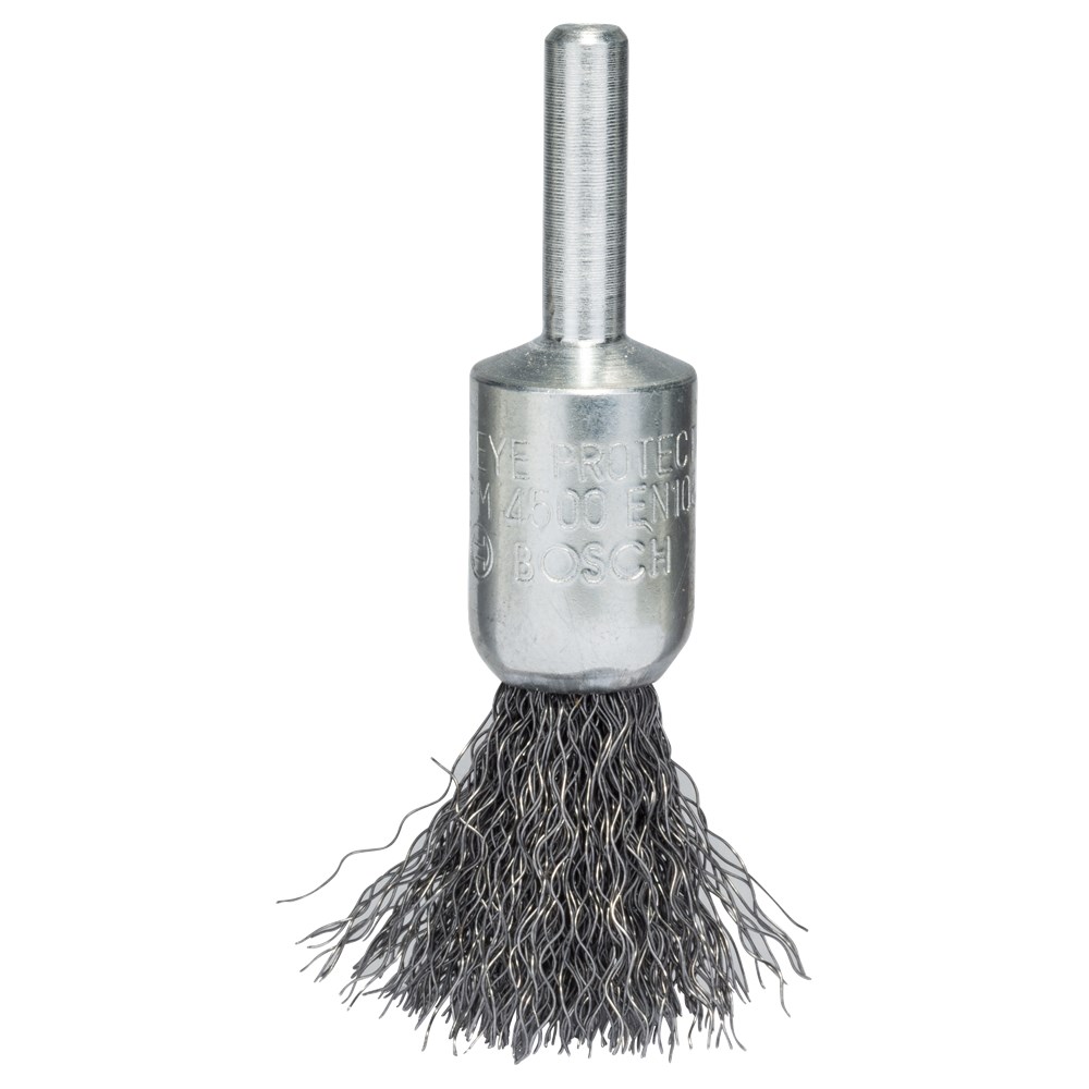 De eindborstel biedt een goede fijne afwerking van het oppervlak. De borstel is voorzien van gegolfde draad voor lichte tot middelzware reinigingswerkzaamheden op kleine stalen oppervlakken. De vorm is ideaal voor reinigingswerkzaamheden op zeer moeilijk bereikbare plekken, zoals in hoeken en de binnenkant van buizen en profielen. De eindborstel is ook geschikt voor ontroesten, opruwen, matschuren en voor het verwijderen van verf.