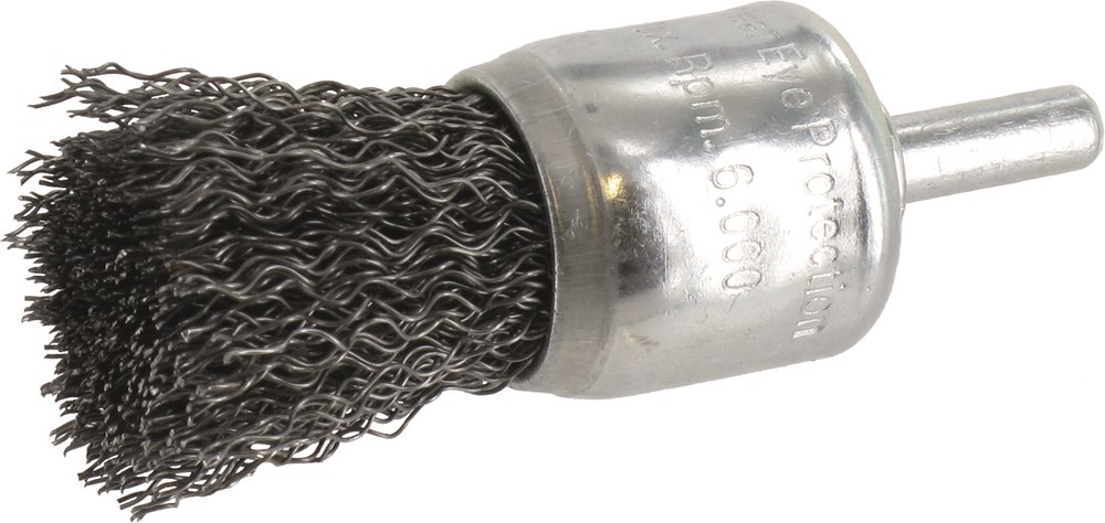 Penseelborstel voorzien van gegolfd gehard kwaliteits staaldraad. Geschikt voor industrieel gebruik op (accu-) boormachines, kolomboormachines en hoogtoerige machines.