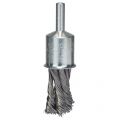 De eindborstel biedt een goede grove afwerking van het oppervlak. De borstel is voorzien van getordeerde draad voor middelzware reinigingswerkzaamheden op kleine stalen oppervlakken. De vorm is ideaal voor reinigingswerkzaamheden op zeer moeilijk bereikbare plekken, zoals in hoeken en de binnenkant van buizen en profielen. De borstel is ook geschikt voor het verwijderen van zware roest, lak en vernis.