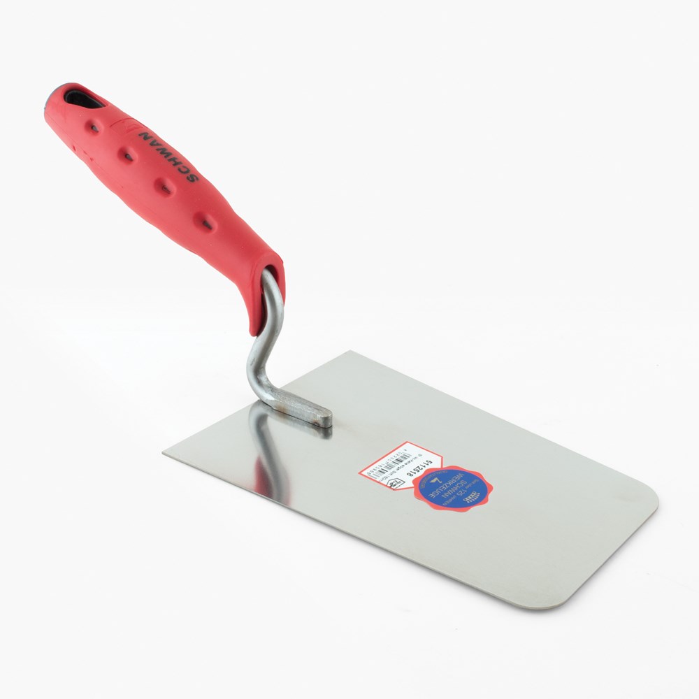 Contacteer onsSCHWAN Artikelnummer: PPCP 5112518 PLAASTERTRUWEEL INOX SOFT GRIP AFGERONDE HOEKEN 180 X 125/95 X 1.0 MM