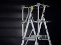 De RolGuard is in hoogte verstelbaar en daardoor flexibel in te zetten. Perfect voor intensief professioneel gebruik met wisselende werkhoogtes of verschil in lichaamslengte. De RolGuard is verkrijgbaar met 3/4, 5/7 of 8/11 treden. Hiernaast is er ook een inklapbare uitvoering beschikbaar: de RolGuard Compact 5/7 treden. Deze platformtrap heeft dezelfde eigenschappen als de reguliere RolGuard met 5/7 treden, met het grote verschil dat deze extra ingeklapt kan worden. Dit vermindert de transport- / opberglengte met 44 centimeter tot slechts 2,18 meter. Hierdoor past deze trap in de meeste transportbusjes en is het extra gemakkelijk te vervoeren.