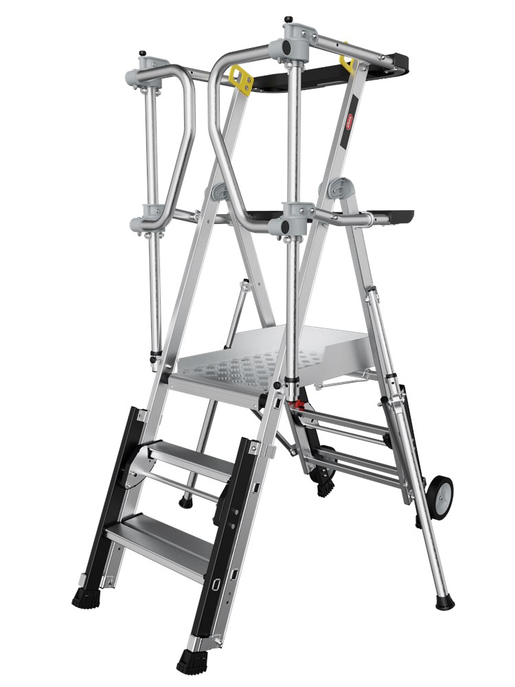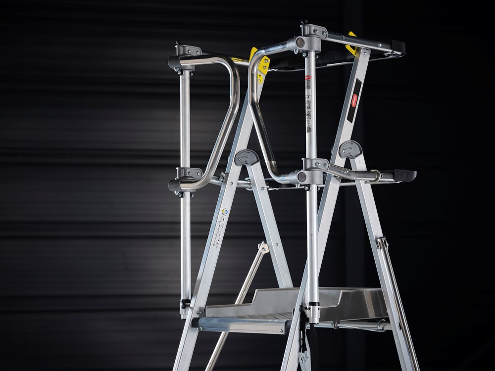 RolGuard. Telescopisch verstelbare platformtrap.De RolGuard is onze meest geavanceerde platformtrap. Met het extra grote platform van 60 bij 40 centimeter heb je altijd voldoende ruimte om veilig en comfortabel te staan. Dankzij het veiligheidsframe rondom geniet je altijd van 360 graden valbeveiliging en werk je veilig met de handen vrij. De stabilisator draagt daarnaast bij aan extra stabiliteit tijdens de werkzaamheden. Kortom, de perfecte combinatie van comfort en veiligheid.