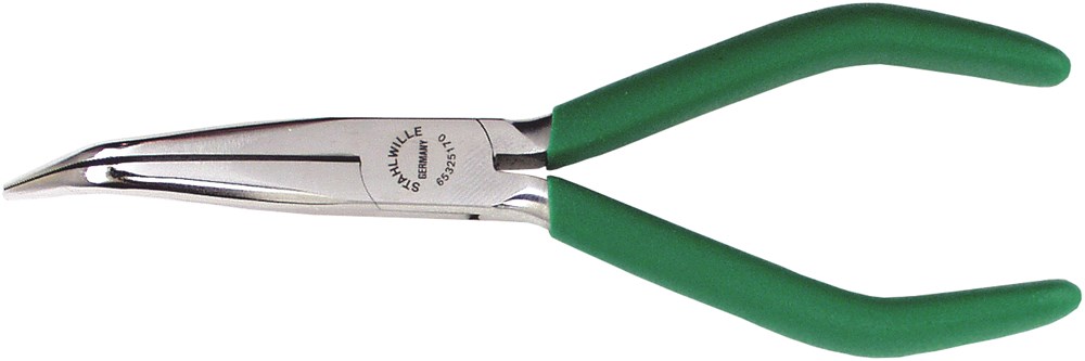 Contacteer onsModel B (45° zijwaarts gebogen), voor werkzaamheden in de fijnmechanica en de elektronica, zeer dunne, lange, plat-ronde punten, grijpvlakkeNmet een fijne schuine kap, doorgestoken scharnier - voor lange levensduur.