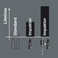 Hoogwaardige bits voor Pozidriv*-schroeven. De Impaktor-technologie zorgt voor een bovengemiddelde gebruiksduur ook onder extreme situaties. Verhoogde wrijvingsweerstand dankzij ruwe diamantdeeltjes op de bitpunt voorkomt het wegglijden uit de schroef. Uitermate geschikt voor gebruik in combinatie met conventionele impact- en slagschroevendraaiers. 1/4" zeskant, passend in houders conform DIN ISO 1173-D 6,3. * Pozidriv = geregistreerd handelsmerk van de firma European Industrial Service Ltd.