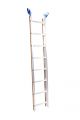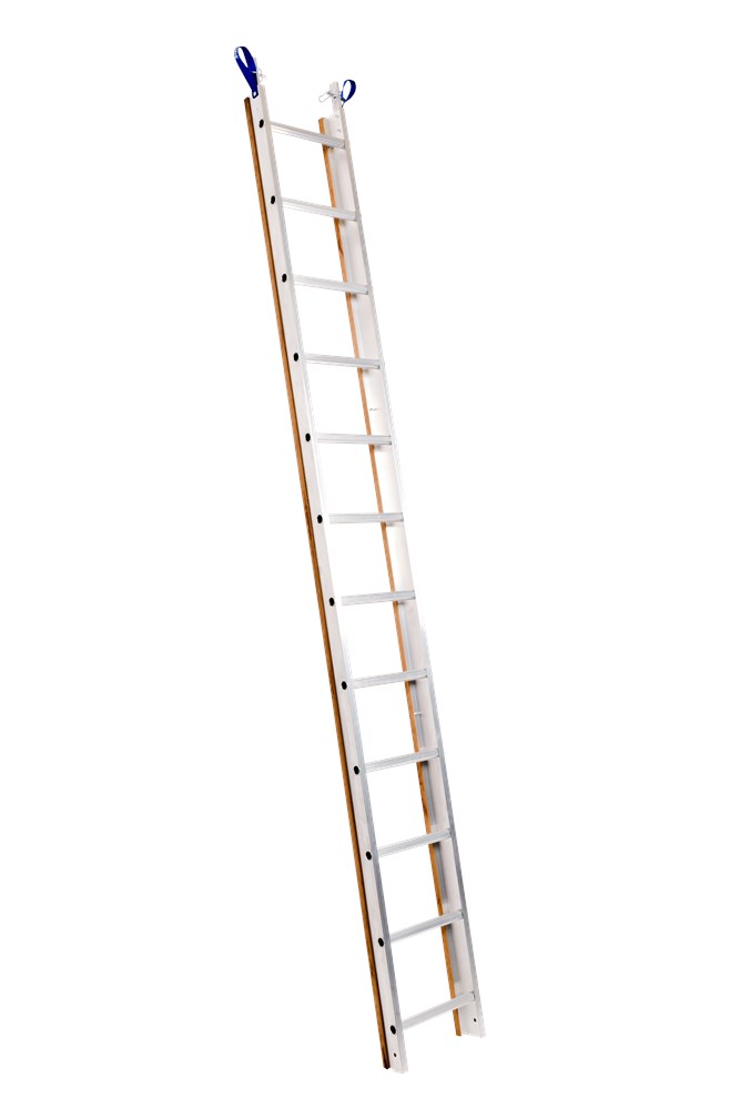 Contacteer onsDe Dakladder is speciaal ontworpen voor gebruik op hellende daken, waarbij schade aan leien of dakpannen wordt voorkomen. Deze ladder is uitgerust met houten profielen aan de onderzijde, wat voorkomt dat de ondergrond wordt beschadigd. De ladder is verkrijgbaar in drie lengtes: 1 meter, 2 meter en 3 meter. Met behulp van standaard koppelstukken kunnen deze ladders aan elkaar gekoppeld worden om grotere afstanden te overbruggen. Een dakladder wordt steeds gebruikt in combinatie met een nokhaak (NHK), een nokhaak is nodig om de ladder aan de bovenkant van het dak te bevestigen.