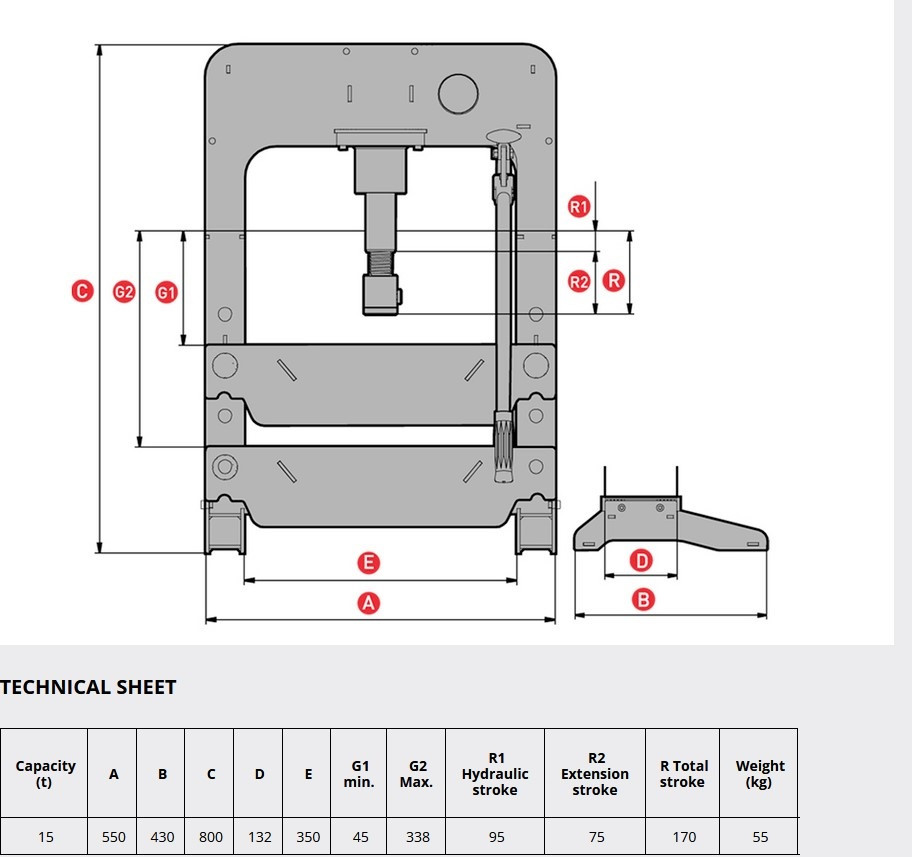 Contacteer onsMaes Vakhandel Artikelnummer: SMPRS15G PRES HYDRAULIK TAFEL 15 TON