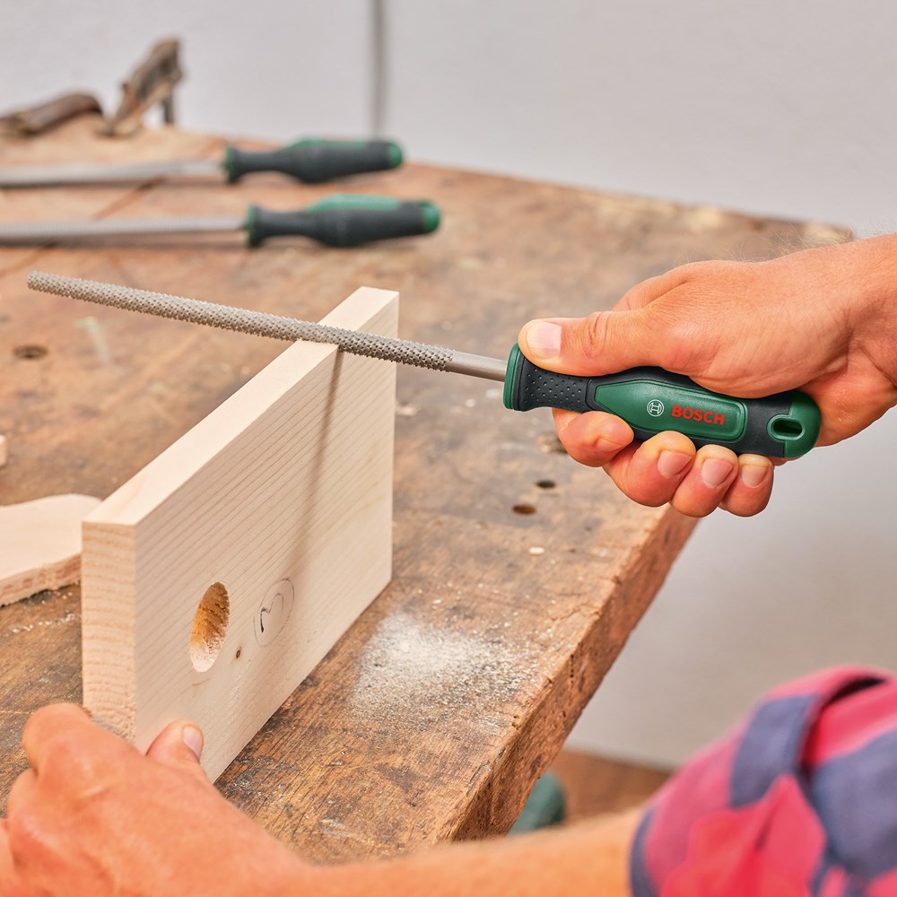 De Bosch 3-delige raspenset 200 mm is ontworpen voor veelzijdige en moeiteloze houtbewerking. Deze bevat robuuste, ergonomische hardmetalen raspen voor een onberispelijke afwerking en vormgeving van hout.