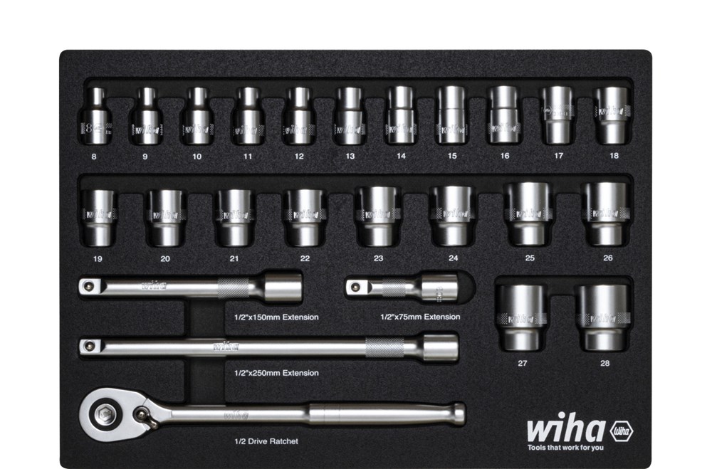 Contacteer onsWIHA Artikelnummer: 44740 338-91 SOCKET SET 26 PCS METRIC 1/2 DRIVE