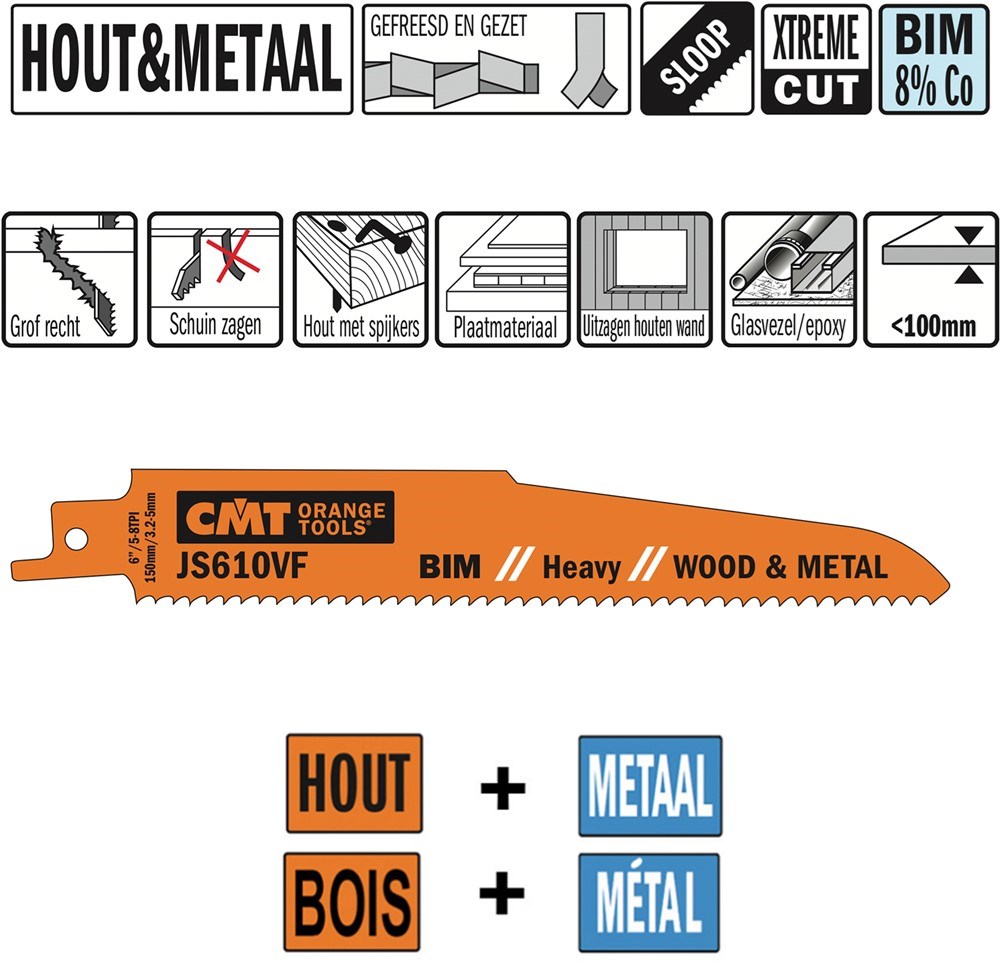 Contacteer onsArtikelnummer: CTJS610VF-5 RECIPROZAAGBLAD BI-METAAL 150MM X 1.6 X 3.2-5TPI