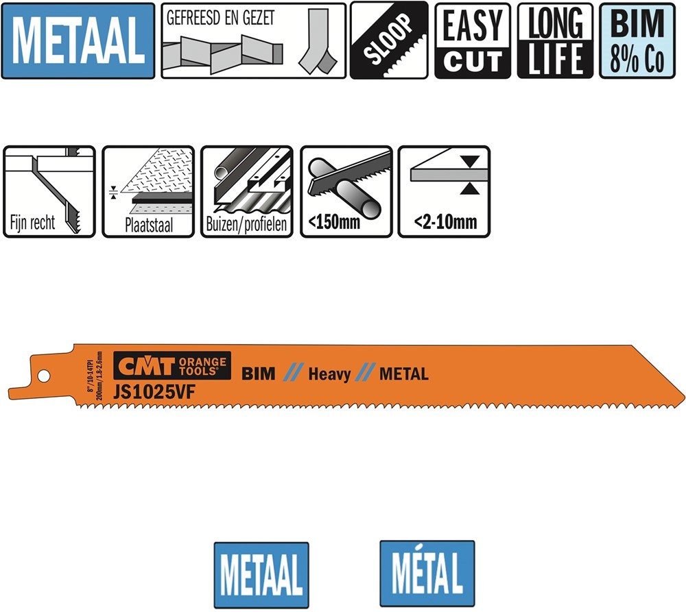 Contacteer onsArtikelnummer: CTJS1025VF-5 RECIPROZAAGBLAD BI-METAAL 200MM X 1.25 X 10-14TPI