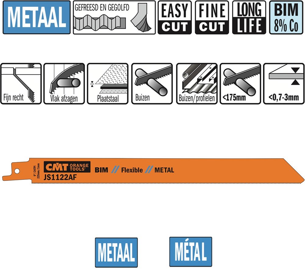 Contacteer onsArtikelnummer: CTJS1122AF-5 RECIPROZAAGBLAD BI-METAAL 225MM X 0.9 X 24TPI