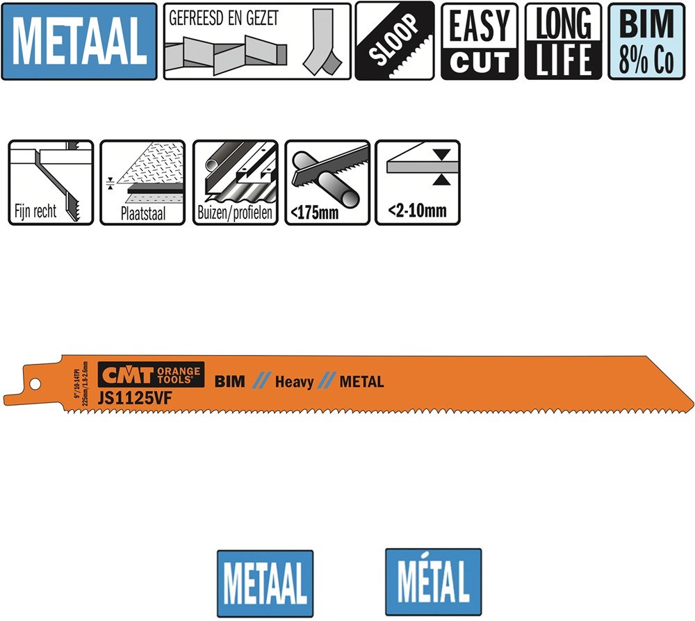 Contacteer onsArtikelnummer: CTJS1125VF-5 RECIPROZAAGBLAD BI-METAAL 225MM X 1.25 X 10-14TPI