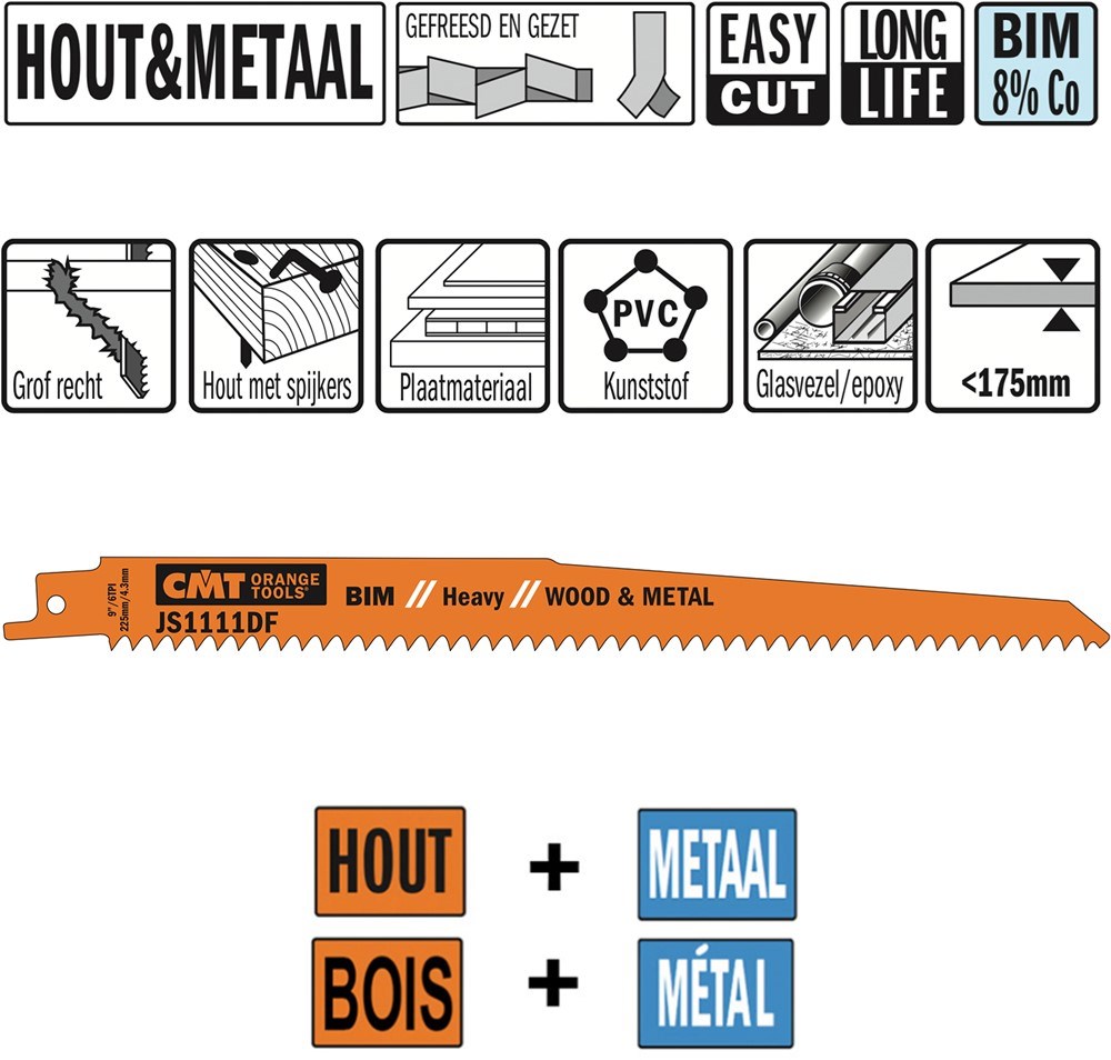 Contacteer onsArtikelnummer: CTJS1111DF-5 RECIPROZAAGBLAD BI-METAAL 225MM X 1.25 X 6TPI