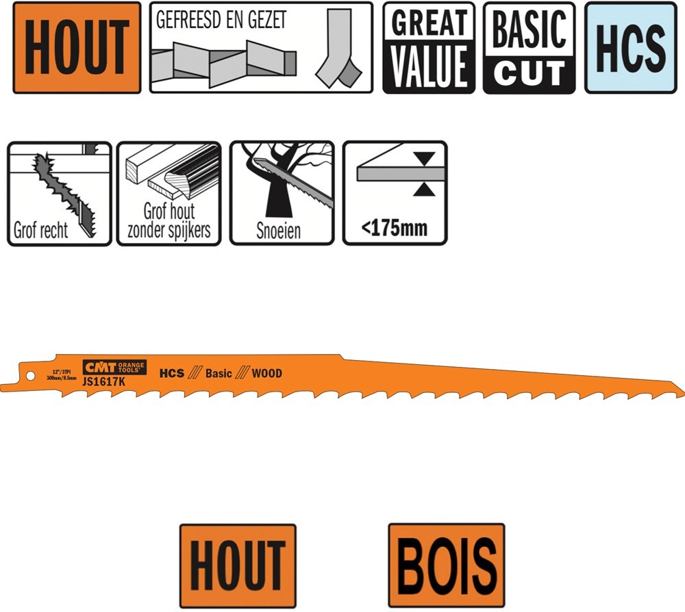 Contacteer onsArtikelnummer: CTJS1617K-5 RECIPROZAAGBLAD HCS 300MM X 1.25 X 3TPI