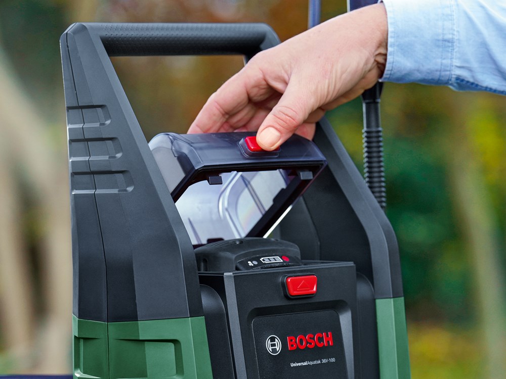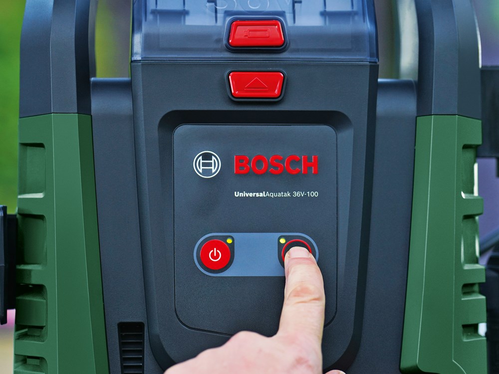 De krachtige en draagbare, snoerloze hogedrukreiniger om thuis of onderweg te reinigen. Ga vuil en viezigheid op allerlei oppervlakken thuis of onderweg te lijf met de draagbare en krachtige UniversalAquatak 36V-100. Deze snoerloze hogedrukreiniger levert fantastische reinigingsprestaties met tevens hoge flexibiliteit. Deze heeft een Trio-sproeier met diverse spuitpatronen en twee verschillende drukmodi, hoog en ECO, om hardnekkiger vuil te verwijderen van oppervlakken als terrassen en opritten en minder hardnekkig vuil van kwetsbare oppervlakken als speelgoed of tuinmeubels. Het uniek ontworpen, geoptimaliseerde hydraulische systeem biedt hogedrukreiniger-prestaties, maar gebruikt aanzienlijk minder water, ideaal voor waterbekkens die afgelegen liggen of waar weinig water beschikbaar is. Gemakkelijk te vervoeren en met praktische opbergmogelijkheid op het apparaat voor hogedrukslang, pistool en sproeier voor reinigingsmiddel kan deze compacte reiniger snel opgeborgen en gepakt worden. De geïntegreerde Bosch Syneon Technology zorgt voor optimaal vermogen en maximale looptijd. Het gereedschap maakt deel uit van het 36V POWER FOR ALL-systeem. Eén accu kan worden gebruikt voor alle 36V POWER FOR ALL-gereedschappen.